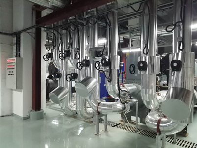 每个模块机房配备8台精密空调机组,温度控制范围为23±2°C;每个模块机房配备4台加湿器,湿度控制范围为40%~60%;冷水机组采用美国开利600RT,N+1配置;密闭冷风通道,采用下送风、上回风方式。